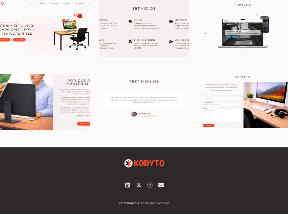 Dos nuevas secciones en el primer restyling de la web de Kodyto: proyectos y testimonios.