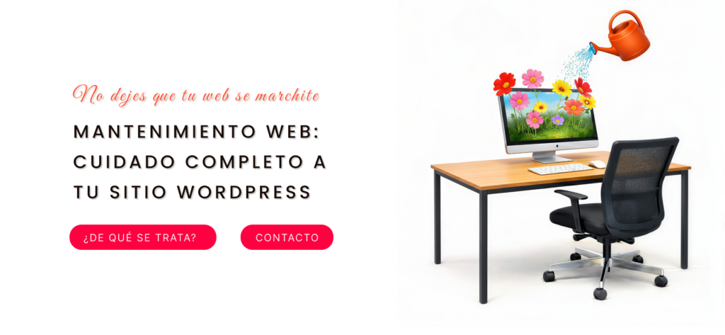 Todos estos elementos que puedes ver en la sección comunican una idea a modo de analogía, que lo que en esencia dice es lo siguiente: “Al igual que las flores se marchitan si no se cuidan, tu web puede estropearse si no se le da un buen mantenimiento”. Esto lo plasma en la pantalla del usuario de forma sencilla y llamativa con una ilustración de vibrantes colores y una tipografía en el título que reflejan muy bien la estética de la imagen.